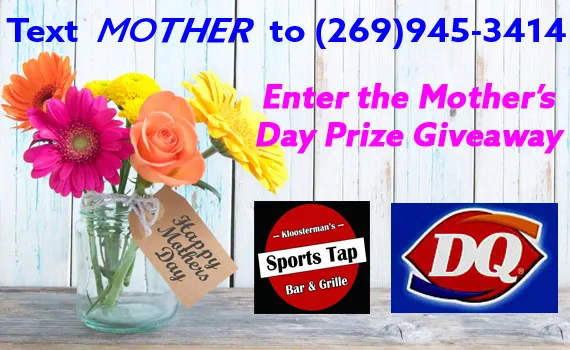 It's FREE to enter! Text MOTHER to 269-945-3414 by May 8th.