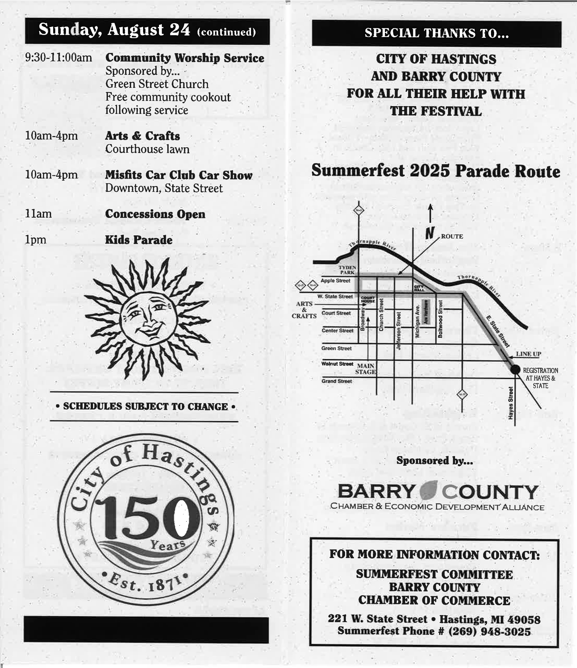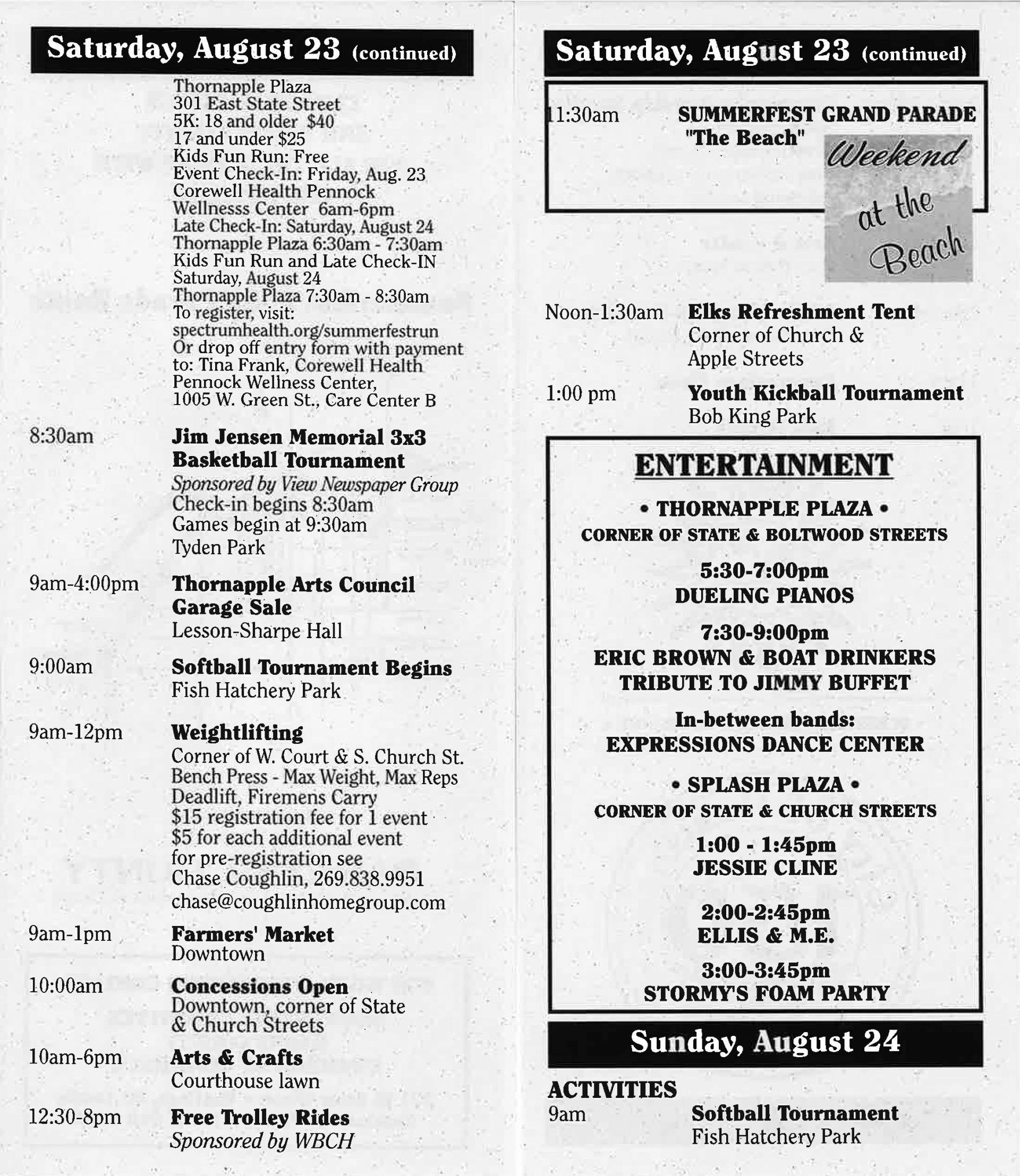 Summerfest Schedule